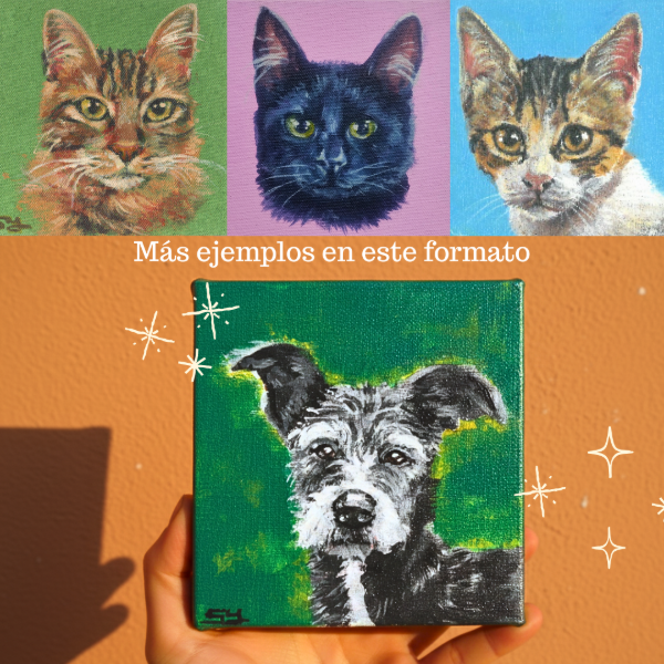 Cada Mini Canvas es un retrato personalizado de 10x10cm, pintado con acrílicos sobre bastidor entelado, con materiales de excelente calidad, elegidos para perdurar en el tiempo, donde cada pincelada celebra la esencia de ese amor profundo. El regalo perfecto para quien ama a sus amigos de otra especie... ¡o para darte un gusto y tener siempre cerca a tu mejor compañía!